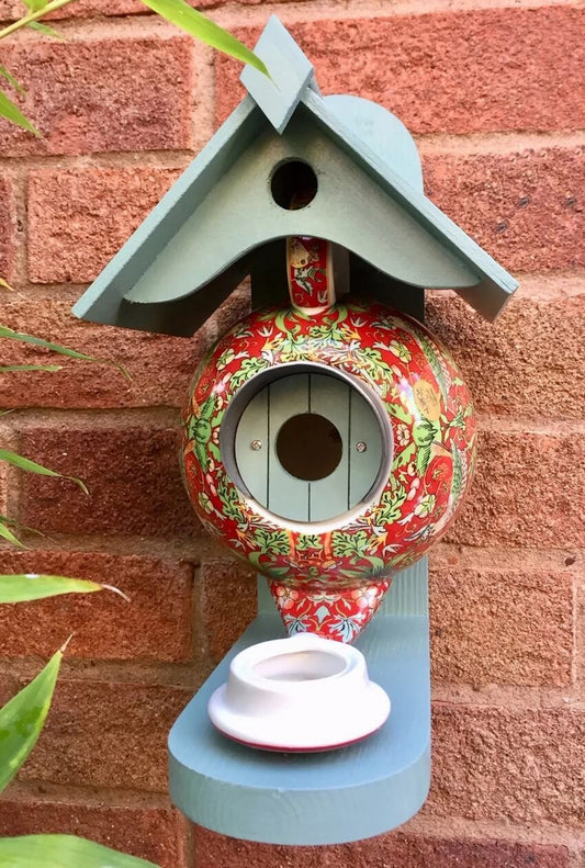 Handmade William Morris Teal Teapot Bird House and Feeder