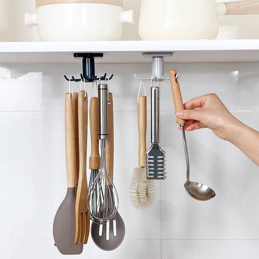 Utensil Holder Hanging Rack 6-Hooks - Under Shelf & Cabinet Kitchen Organizer