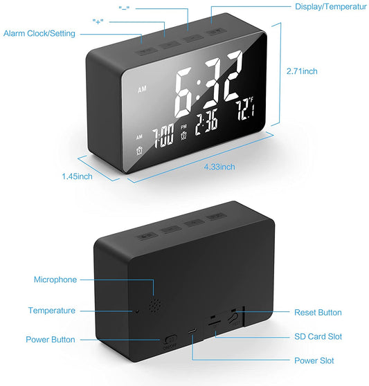 Wide View Security Camera Alarm Clock - WiFi, Night Vision